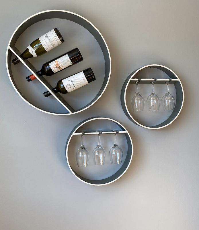 Maple with black outer stain Wine Rack 22’’ x 4’’ Wine Glass Storage 16”x 2.5” | diameter by depth
